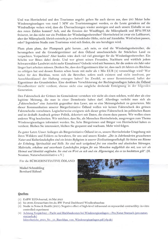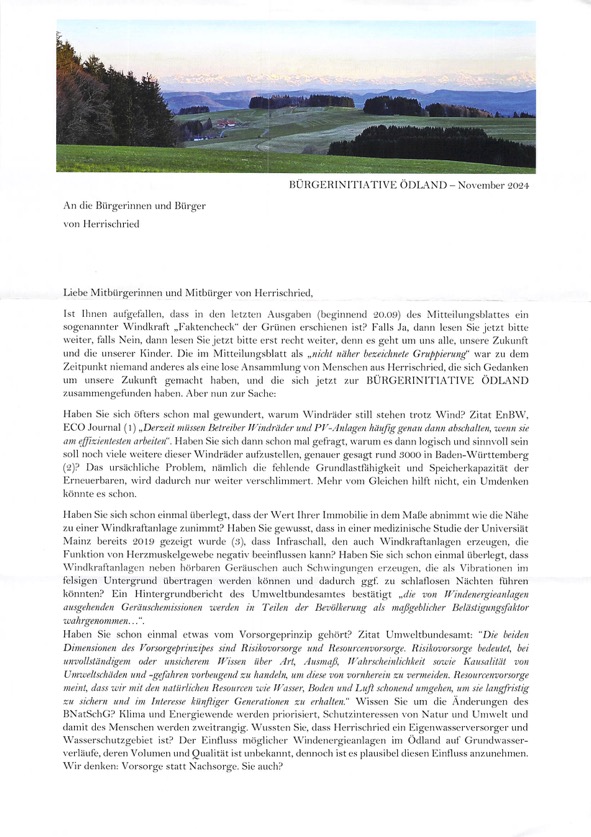 Auch ein Windpark mit 12 Anlagen ist in Herrischried geplant – Von der Ödlandkapelle bis Wehrhalden. Es gibt Widerstand. Neue Gruppe – Für den Erhalt des Ödlands Bürgerbegehren in Herrischried – August 2024 – über 450 Unterschriften gesammelt.